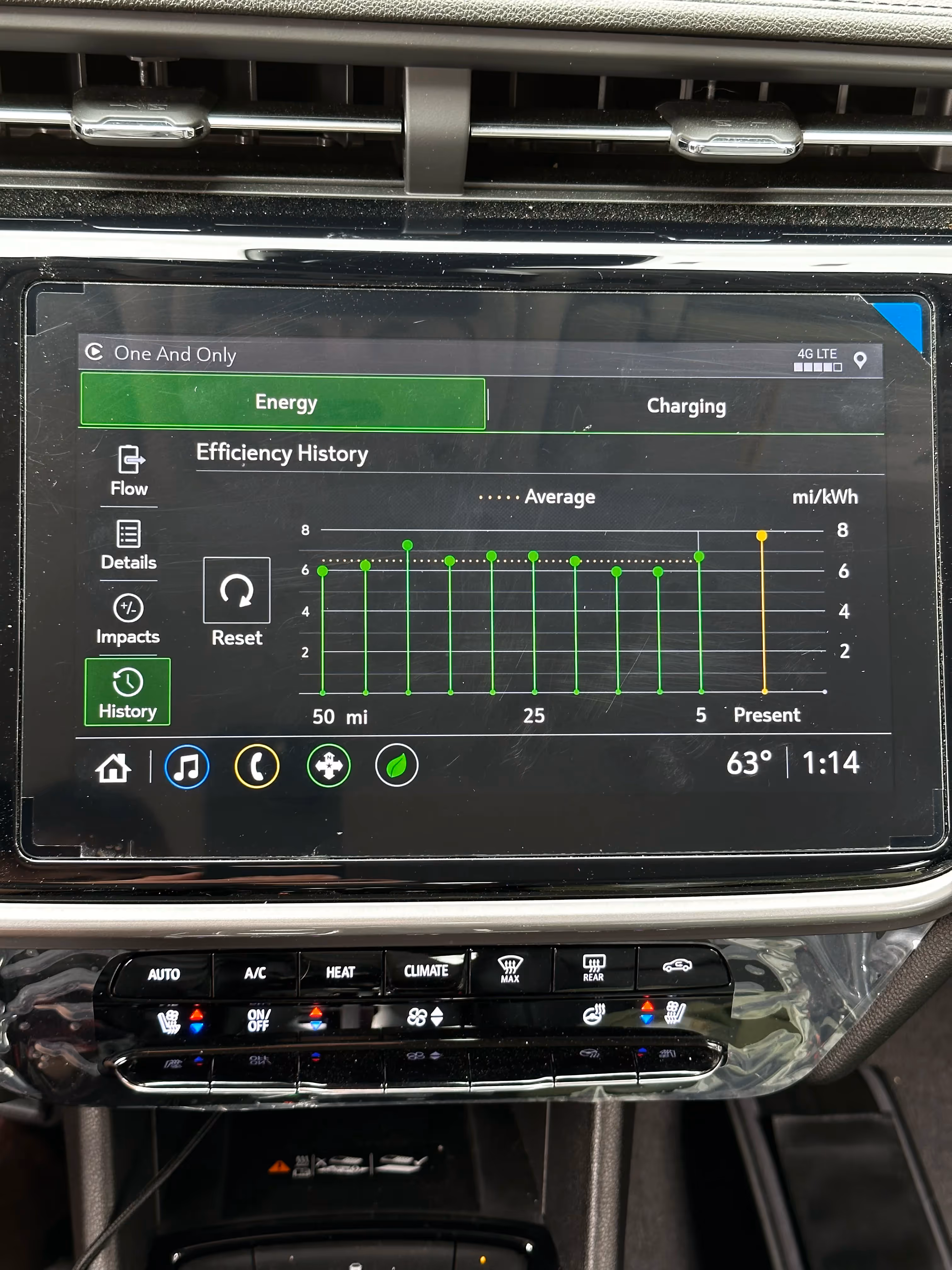 This screen displays the efficiency (miles/kWh) over the last 50 miles, in 5 mile increments. In contrast to ICE vehicles, which typically do not offer such detailed efficiency data, access to this data can provide insights into driving style and how to improve range. As you can see in the picture below, EVs are capable of incredible feats of efficiency when taking advantage of regenerative braking, reducing absolute speed, and minimizing additional energy demand from inside the cabin (e.g. using heat).