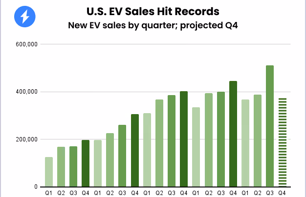 The Chevrolet Equinox, which swept the market when it was released in 2024, came in third place after the Model Y and Model 3, and helped win GM second place in terms of volume. Hyundai group came in third, largely on the success of the Ioniq 5, which more than doubled its quarterly sales from Q2 to Q3.
